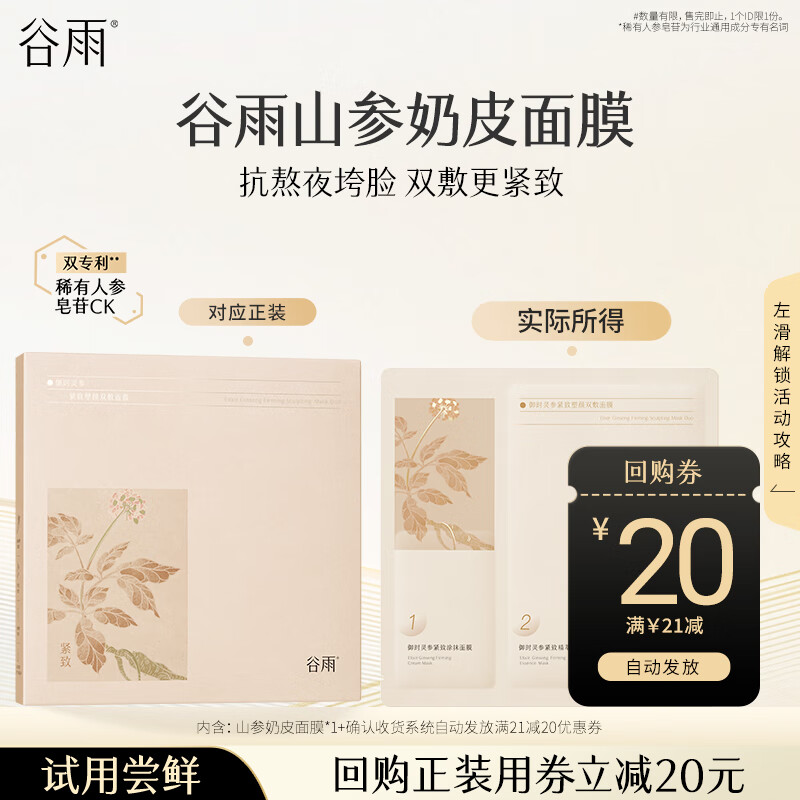 谷雨 御时灵参紧致塑颜双敷面膜1片 入会如砸5券0.9亓
