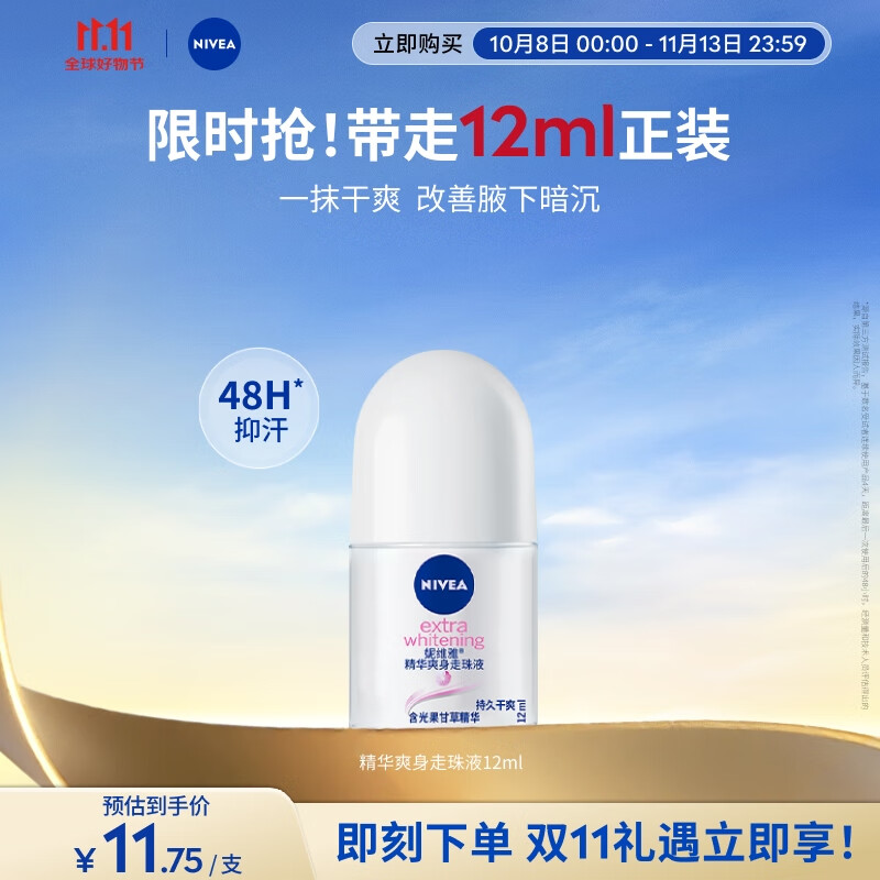 妮维雅(NIVEA)抑汗香体腋下止汗露12ml 砸两张5奍,1首单0.75