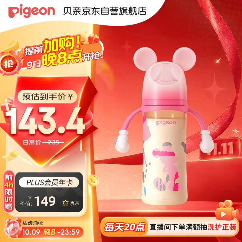 贝亲(Pigeon)PPSU迪士尼双把手奶瓶330ml 凑后93.61送