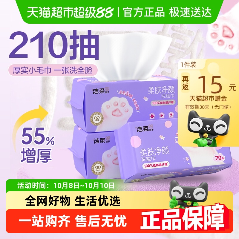洁柔洗脸巾加厚70抽*3包 下拉详情饭15卡3.8/包