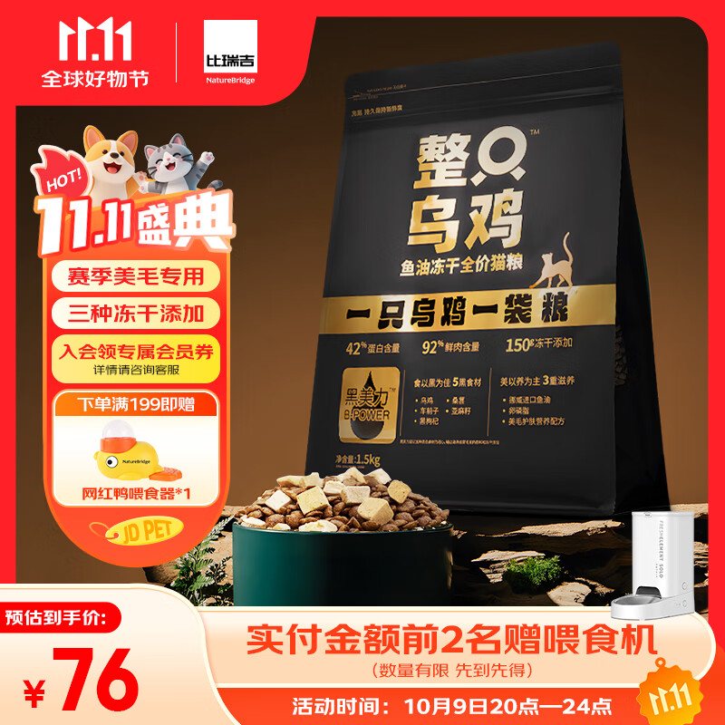 底栏点主会场领200-20奍 比瑞吉整只乌鸡高鲜鸡肉含量猫粮1.5kg 拍