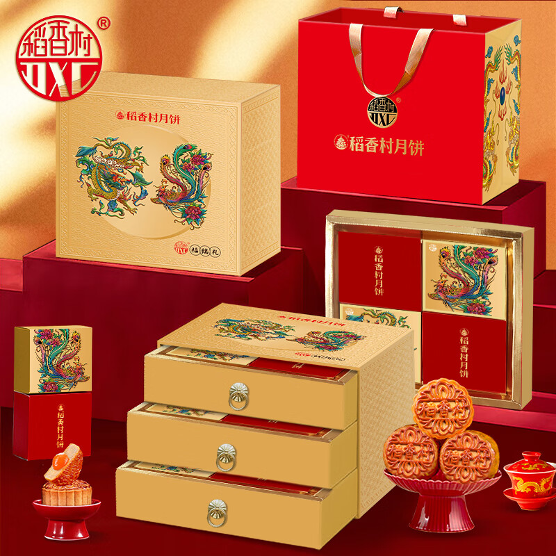 稻香村(DXC)高端三层月饼礼盒1000g10味12饼,拍3件折每件15.