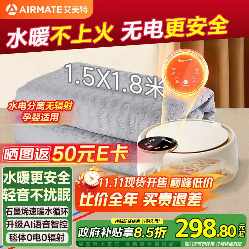领200-20券 跳转app领200-20卷 艾美特水暖毯双人电褥