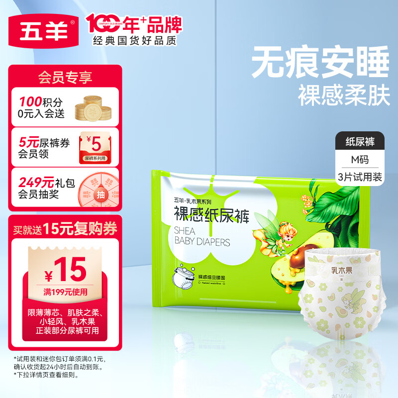 五羊 柔柔芯系列 纸尿裤 M6片 1yuan