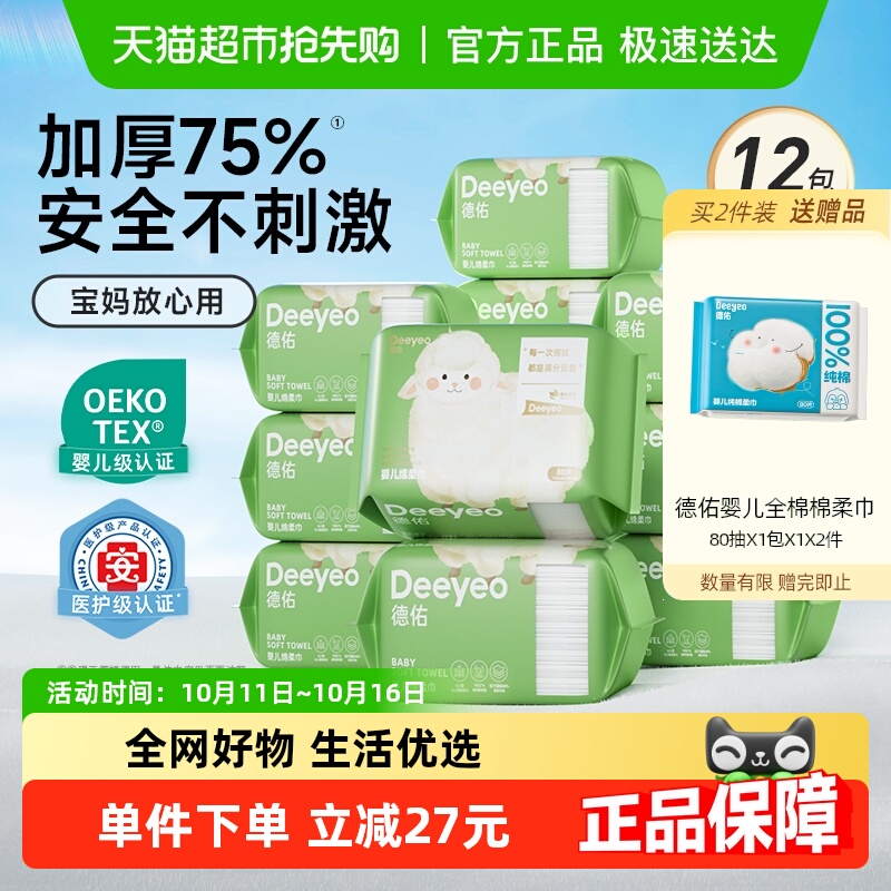 拍2件 赠德佑纯棉棉柔巾80抽2包
