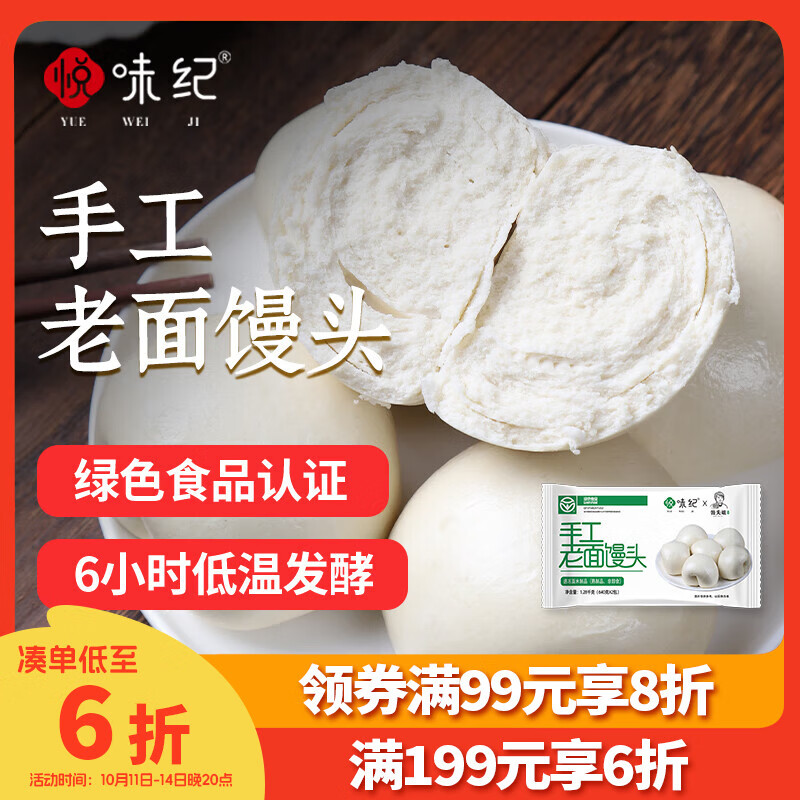 200-20券 悦味纪 手工老面馒头640g*2包 12个 ,7首单,凑后