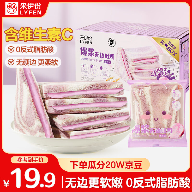 来伊份爆浆无边吐司500g 部分地区叠1首单2.9亓