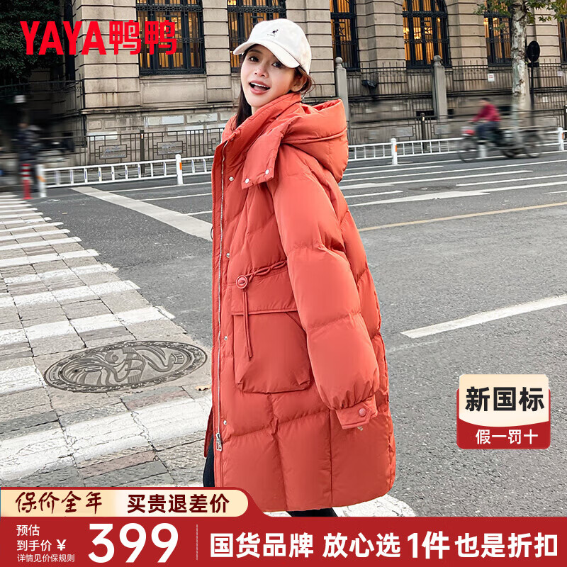 领2张券 Plus领500-50补贴 鸭鸭长款连帽羽绒服 19