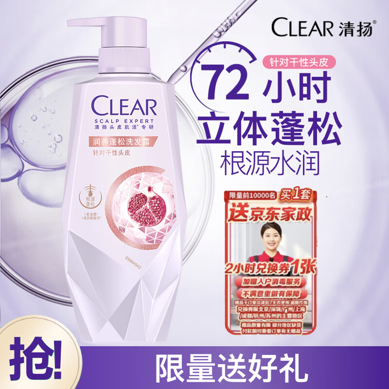 清扬洗发水 水润蓬松270g Plus拍下49.9亓 赠家政2小时