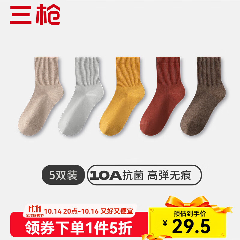 领5折券 三枪10A抗菌中筒袜5双 29.5亓 三枪情侣纯棉