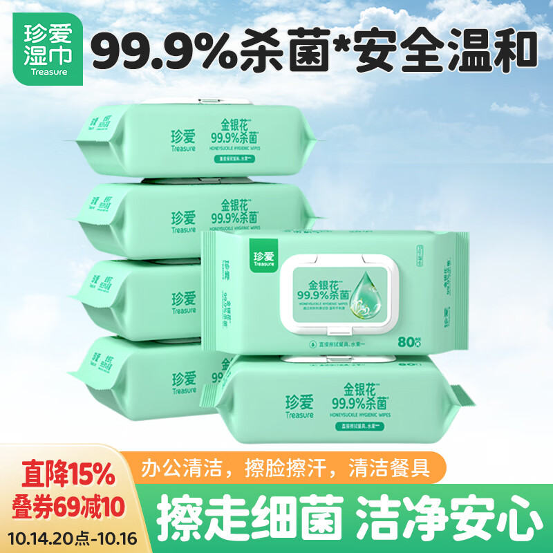2件28 珍爱卫生湿巾金银花提取液 99.9%杀菌湿纸巾80片x6包