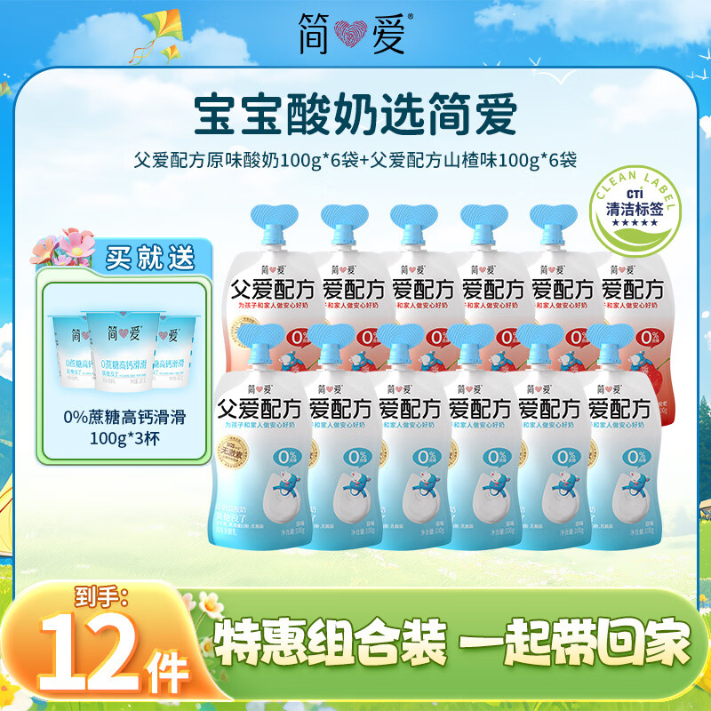 部分号抵扣199-100券 简爱父爱原味0%蔗糖*6袋 父爱山楂0%*6袋