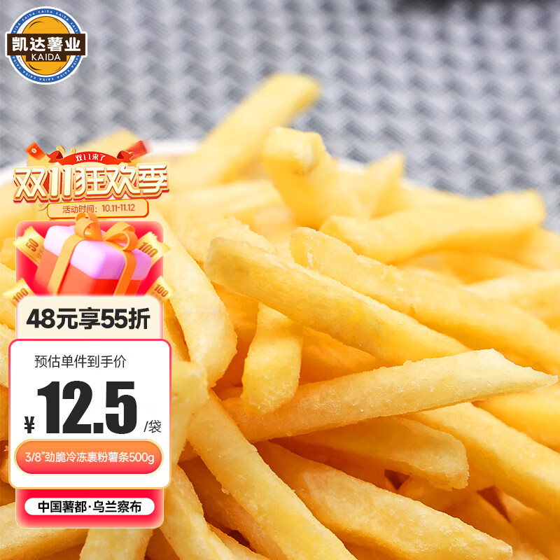 百亿补贴-11.11频道专享 凯达薯业3/8冷冻裹粉粗薯条半成品500