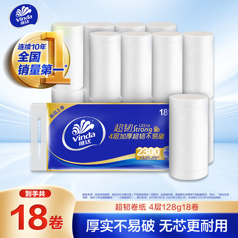 维达(Vinda)无芯卷纸 超韧4层128克*18卷