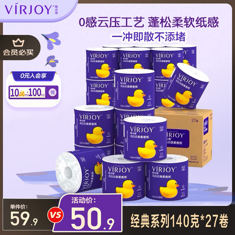 唯洁雅卷纸4层140g*27卷 plus拍3件81.8亓 折1亓/卷 领