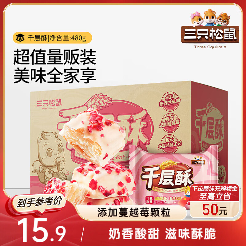 三只松鼠 千层酥蔓越莓味480g,9.9