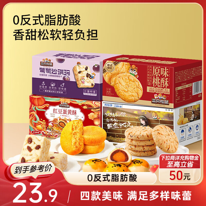 部分地区 三只松鼠四箱中式糕点组合装650g,5.9