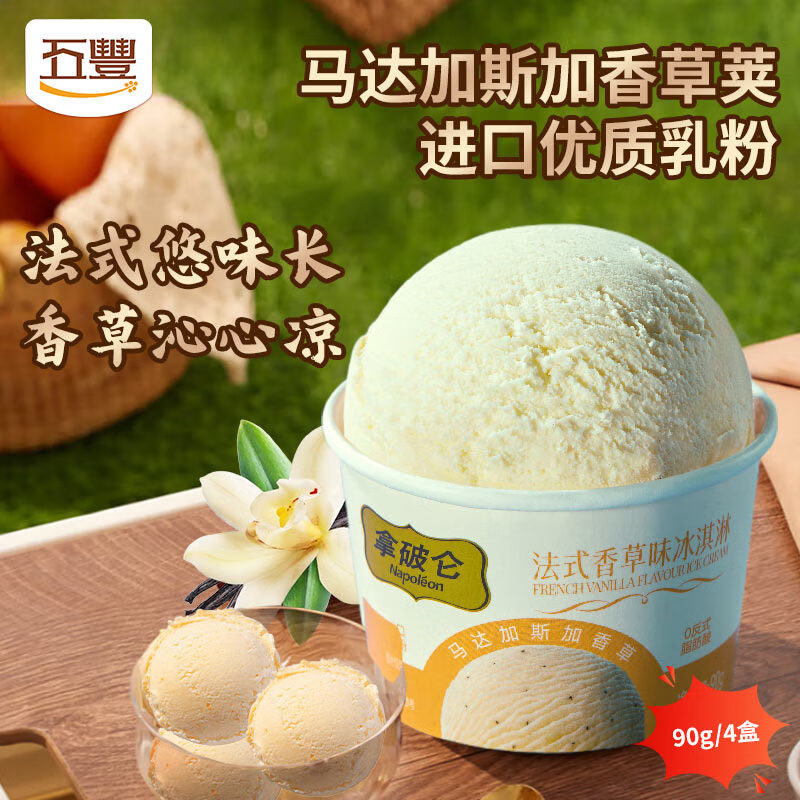 五丰 拿破仑法式香草味冰淇淋90g*4盒 2件每件7.72
