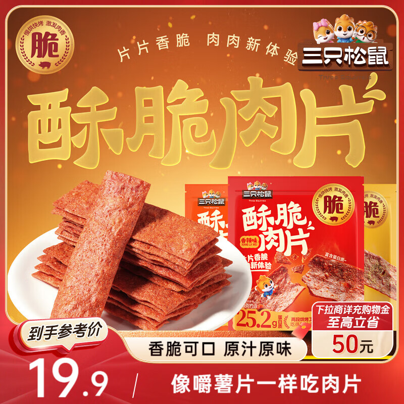 部分地区 三只松鼠脆肉片30g*6混合口味,5.9 三只松鼠黑猪午餐
