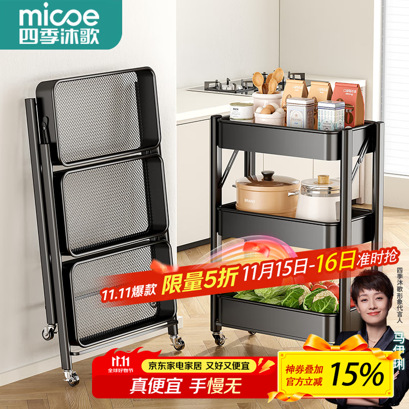 四季沐歌厨房置物架落地折叠小推车,拍1件,凑499-40后,25