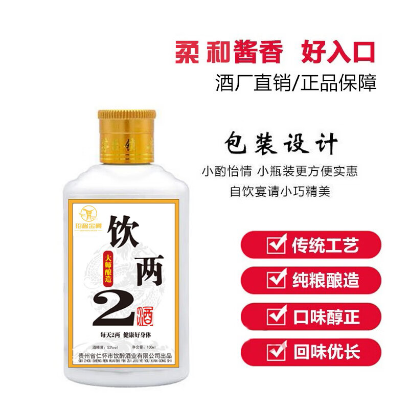 4.9亓 招酱金樽酱香型白酒 53度 陈酿小酒 100ml