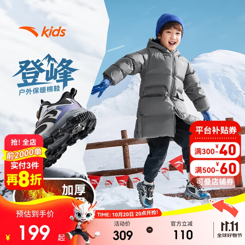 领 安踏儿童任意商品下1000-130 保暖棉鞋 加绒棉鞋 篮球鞋