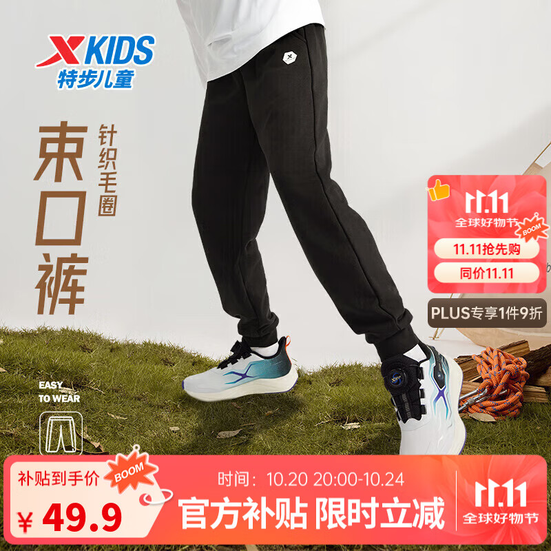 领39-5补贴券 特步儿童针织加绒长裤 49.9亓 特步儿童小糯米
