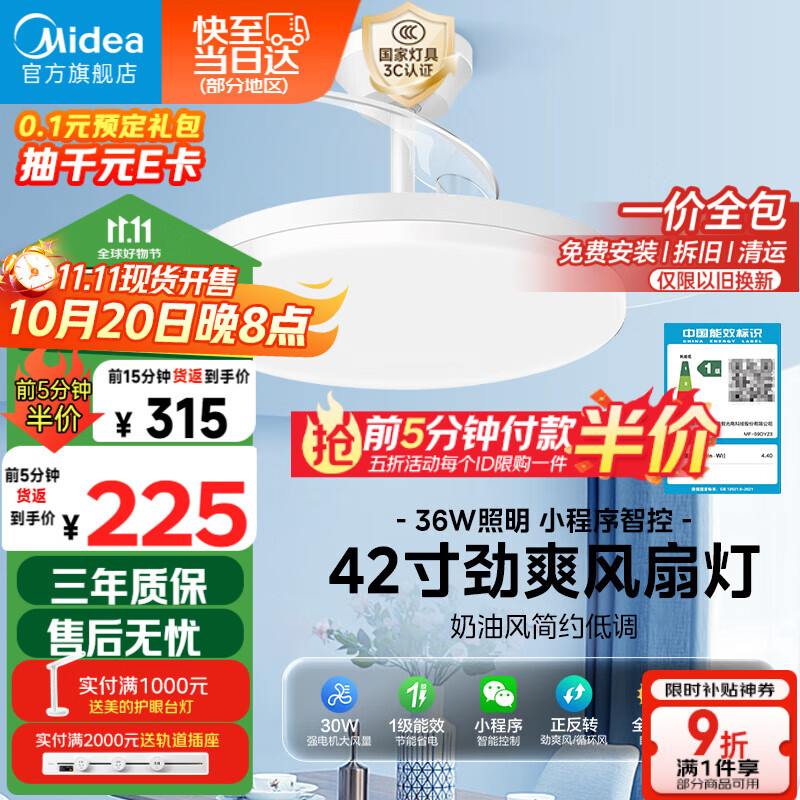 20点 前5分钟半价 美的 风扇灯42寸36w全光谱无极调光(包安装)22