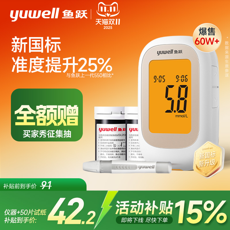 鱼跃550血糖仪测试仪 20试纸