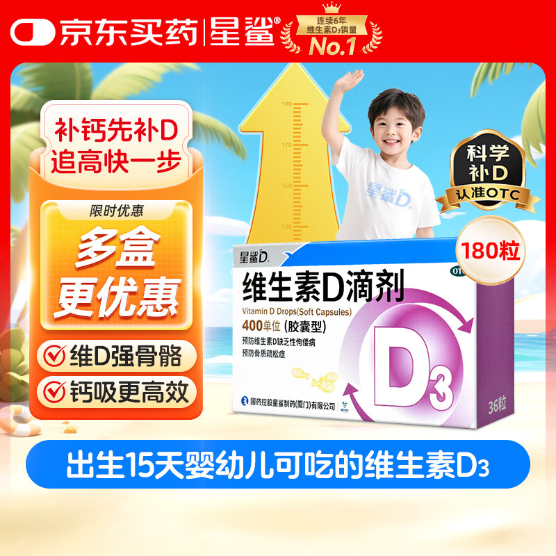 膨胀得9折券 星鲨d3滴剂36粒*5盒(otc) 拍下68亓 折0.