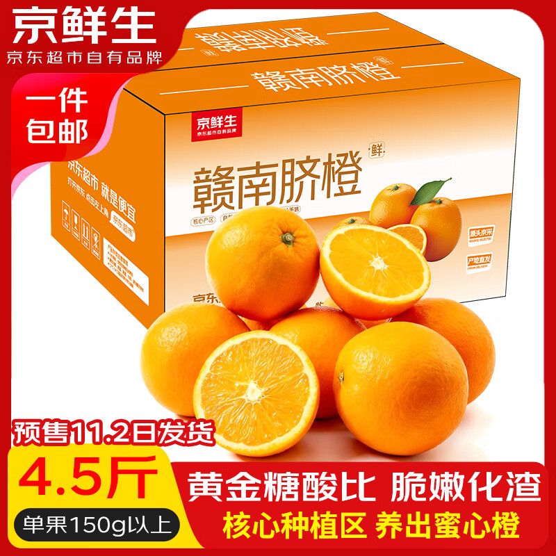 14.9亓 京鲜生江西赣南脐橙 净重4.5斤 单果150g