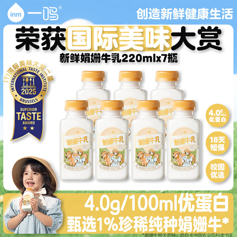 一鸣新鲜娟姗冰牛奶4.0蛋白220mlx7