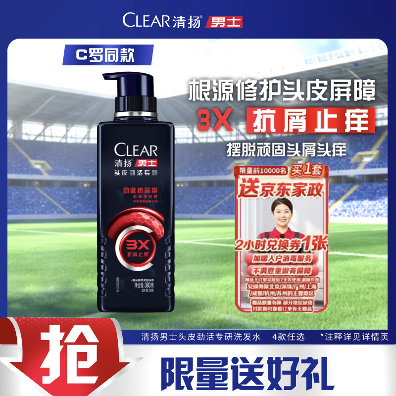 领200-20券 清扬男士劲能瓶洗发水380g 凑后53.9亓 赠
