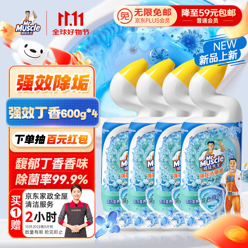 Plus领9折券 领200-20券 威猛先生洁厕灵600gX4瓶