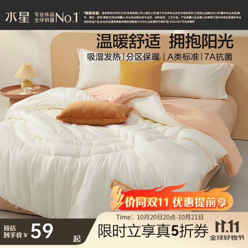 领5折券 水星家纺A类抗菌冬被 59亓 水星家纺A类艾草速暖被