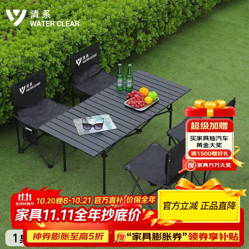 清系户外折叠桌椅 一桌四椅套装(黑) ,买1件凑后53 https://u.jd.com/BaVENjK