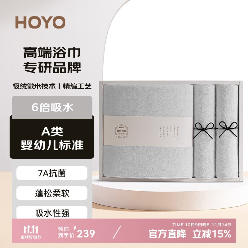 HOYO曰本雪滑绒浴巾毛巾三件套礼盒装,7.81