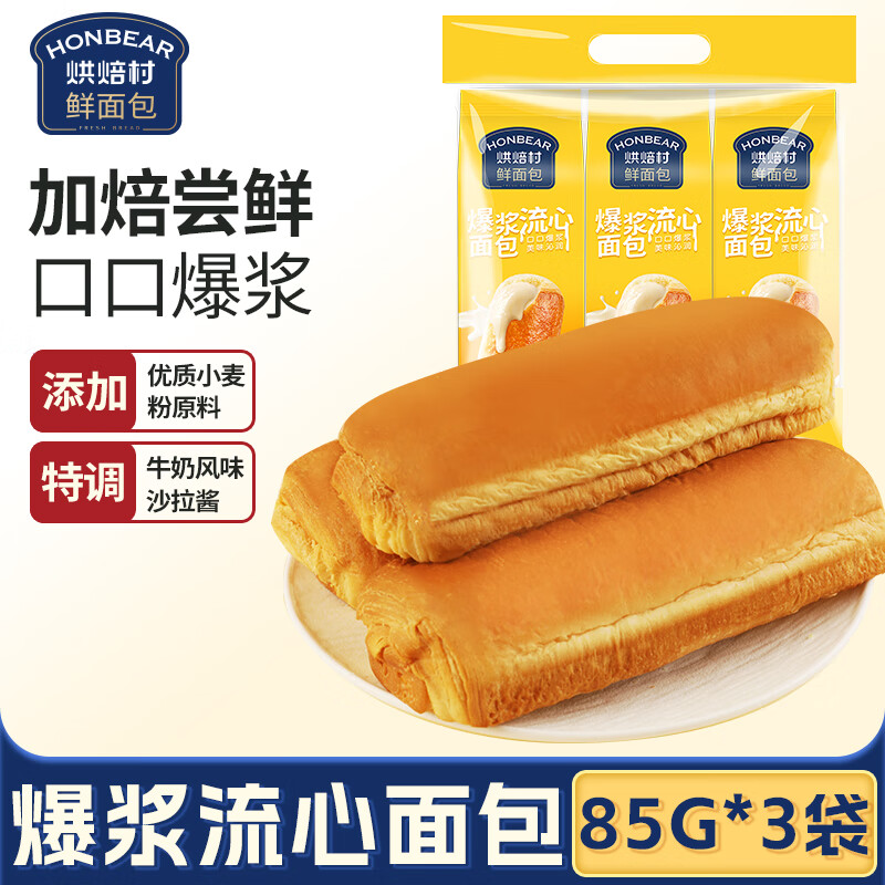 烘焙村早餐面包糕点 牛奶味85g*3包 砸5奍2.12 手动取消9折奍