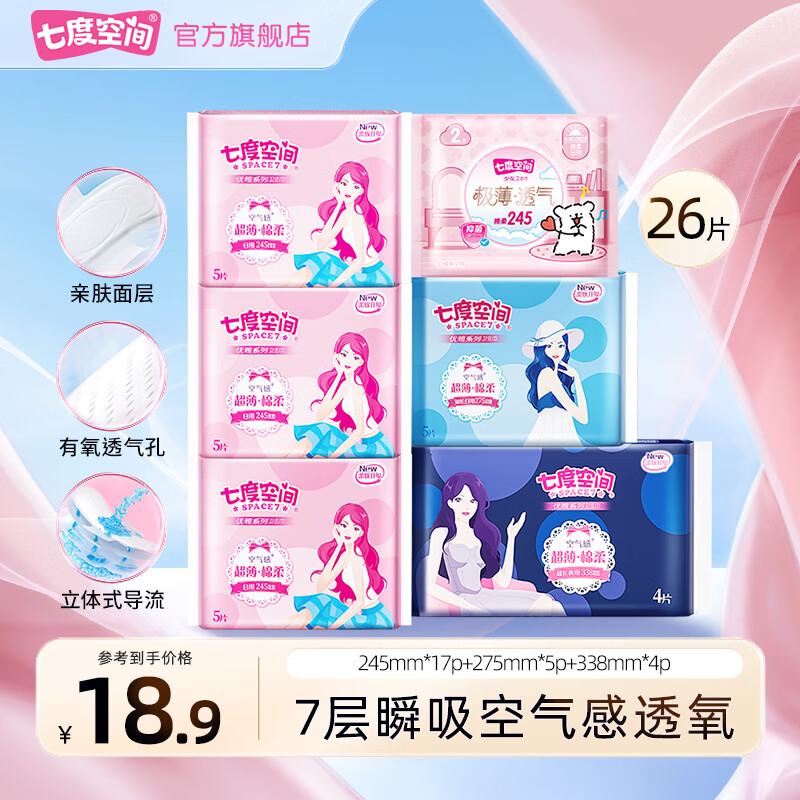 Jd首页-9.9包邮 领8-3劵 七度空间卫生巾26片 8.9亓
