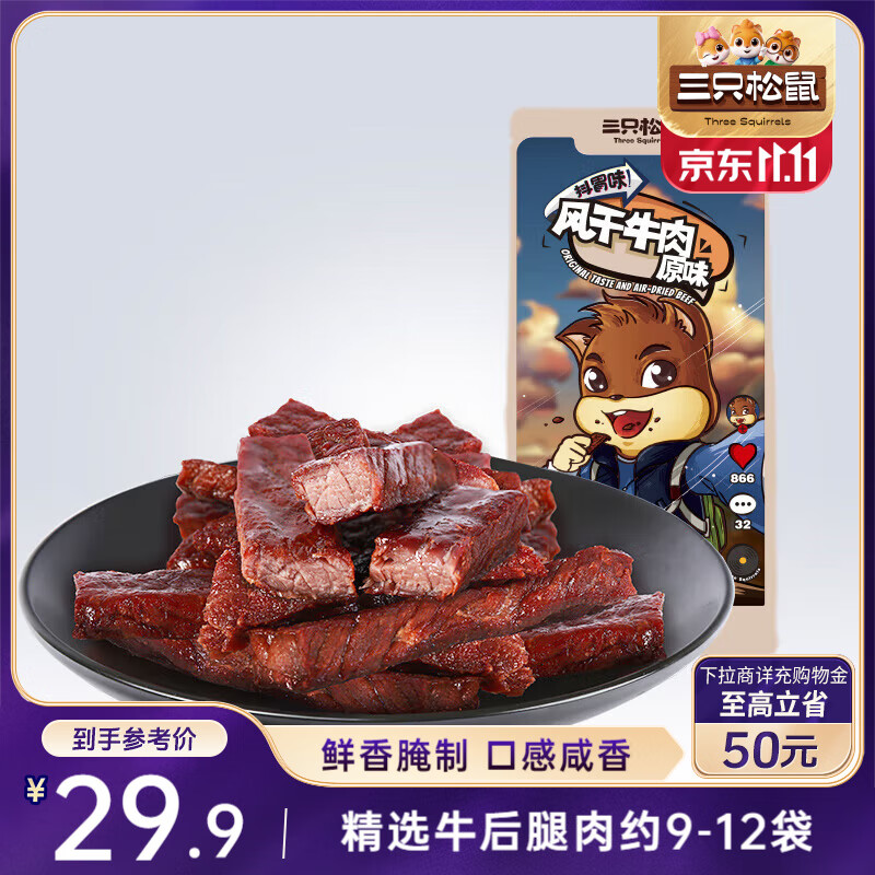 部分地区 三只松鼠 风干牛肉条原味120g袋装,9.9