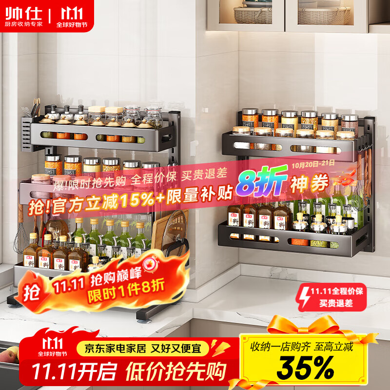 帅仕 厨房置物架2层43长-台面3件套,拍下16