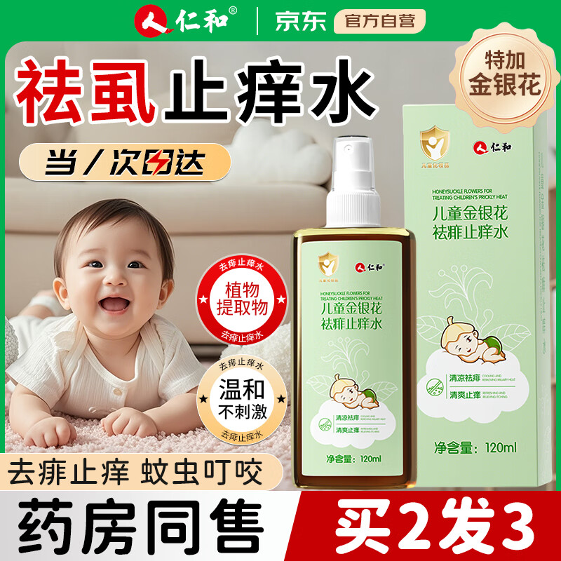 仁和金银花婴儿湿疹泡澡痱子水粉120ml,如有9折奍,拍6件,每件4.43,有赠品