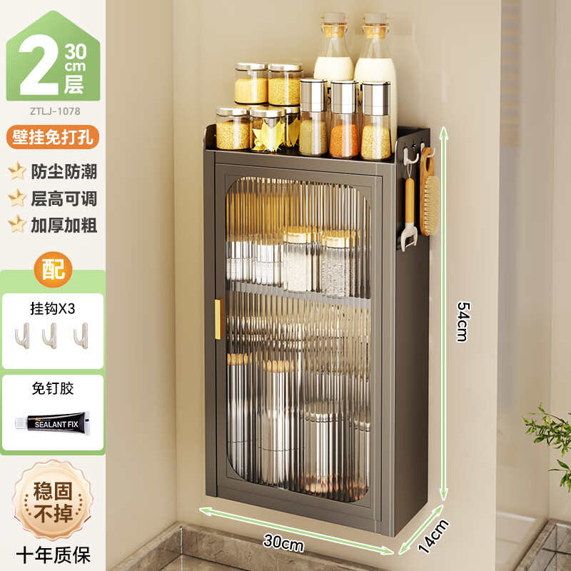 帅仕 厨房置物架调料架壁挂式 枪灰2层30长 钩*3,凑plus300-30后,19