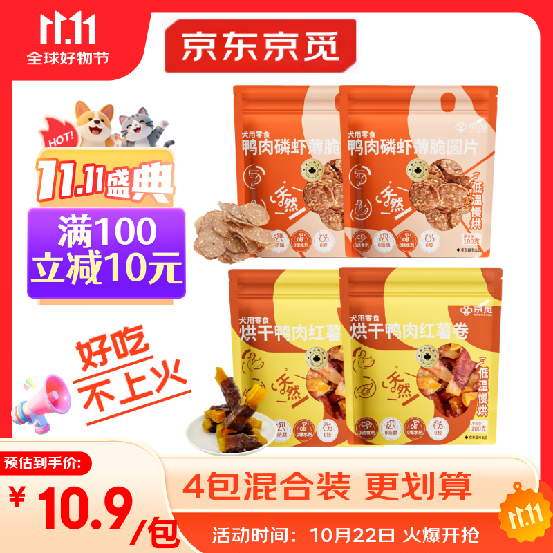 京觅鸭肉磷虾薄脆片100g*2包 鸭肉红薯卷100g*2包