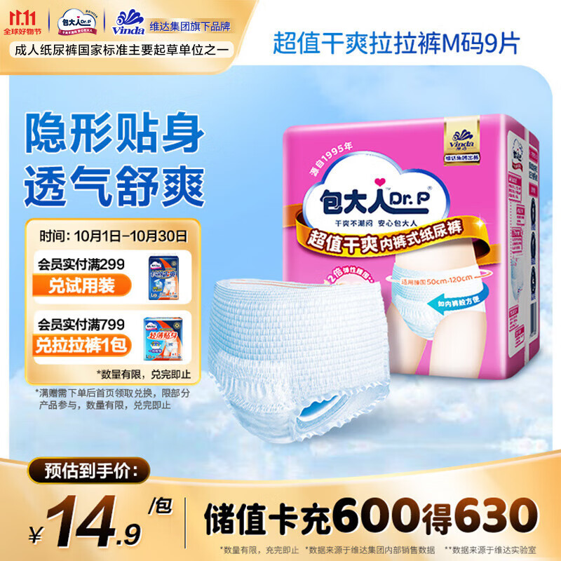 包大人 (Dr.P)超值干爽拉拉裤M9片 (腰围:50-120cm)