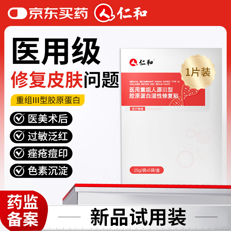 仁和医用重组胶原蛋白敷料面膜,3首单1.3亓