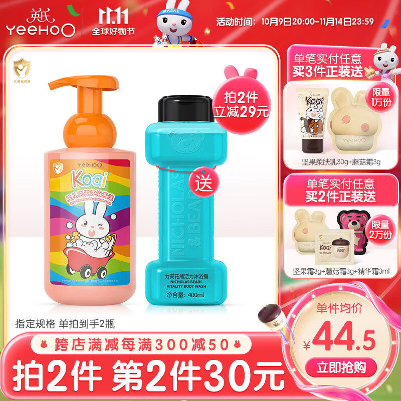 领2张券 英氏儿童洗沐二合一450ml 【送】二合一400ml 拍2