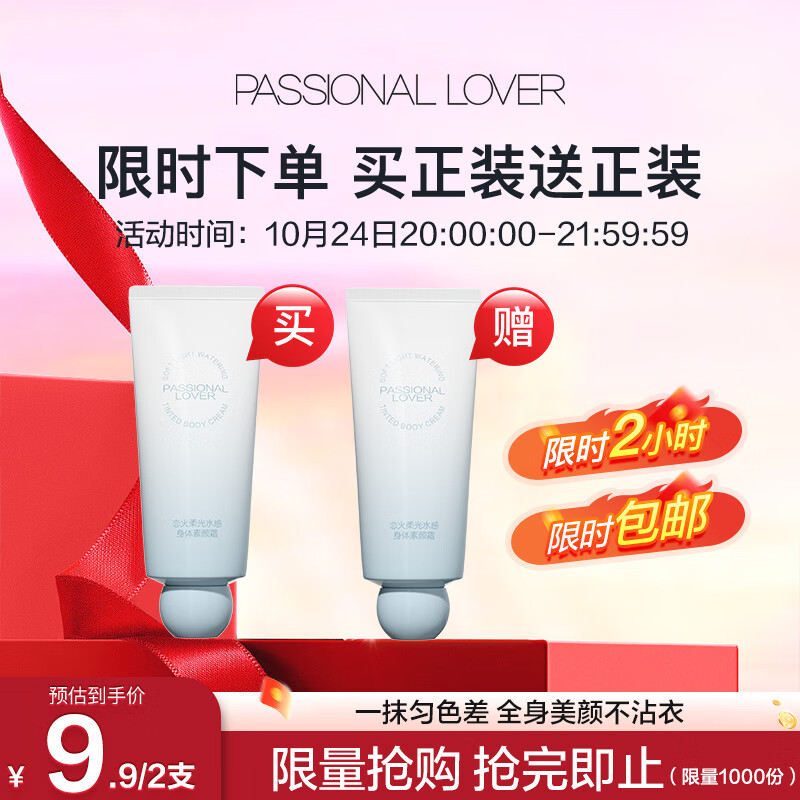 恋火PL海岛限定柔光水感身体素颜霜100g,9.9买一送一