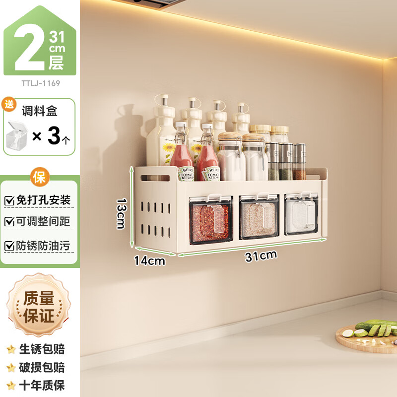 各拍1件凑后38.8 家居499-40券 帅仕 厨房调料置物双层