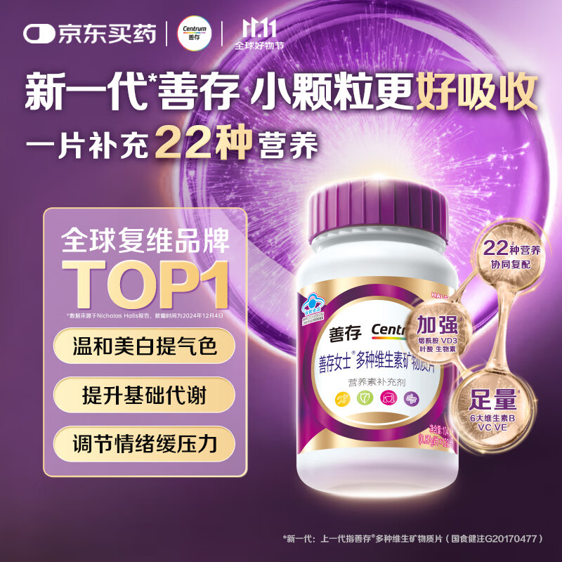 10点眇殺会场 加购 善存女士复合维生素 紫瓶120粒,1亓